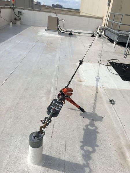 It almost goes without saying that testing of the roof anchor is a quality control measure. Load testing of fall protection and suspended access equipment is implemented to field verify the design and engineering of the following three things:
